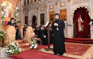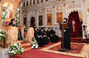 “من له أذنان للسمع فليسمع” ، وانتهت الصلوات بعد منتصف الليل بقليل، بدأ بعدها القداس الإلهي، حيث استهل به قداسته العام الميلادي الجديد ٢٠٢٢.