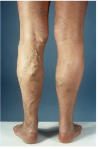 أوردة تبدو ملتوية ومتورمة، كأنما هي حبال على الساقين.