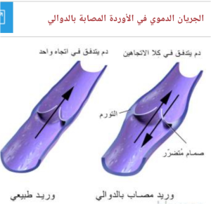 وقد تصبح الصمامات في الأوردة أضعف مما يتيح للدم الذي ينبغي أن يتدفق إلى القلب أن يرجع إلى الوراء