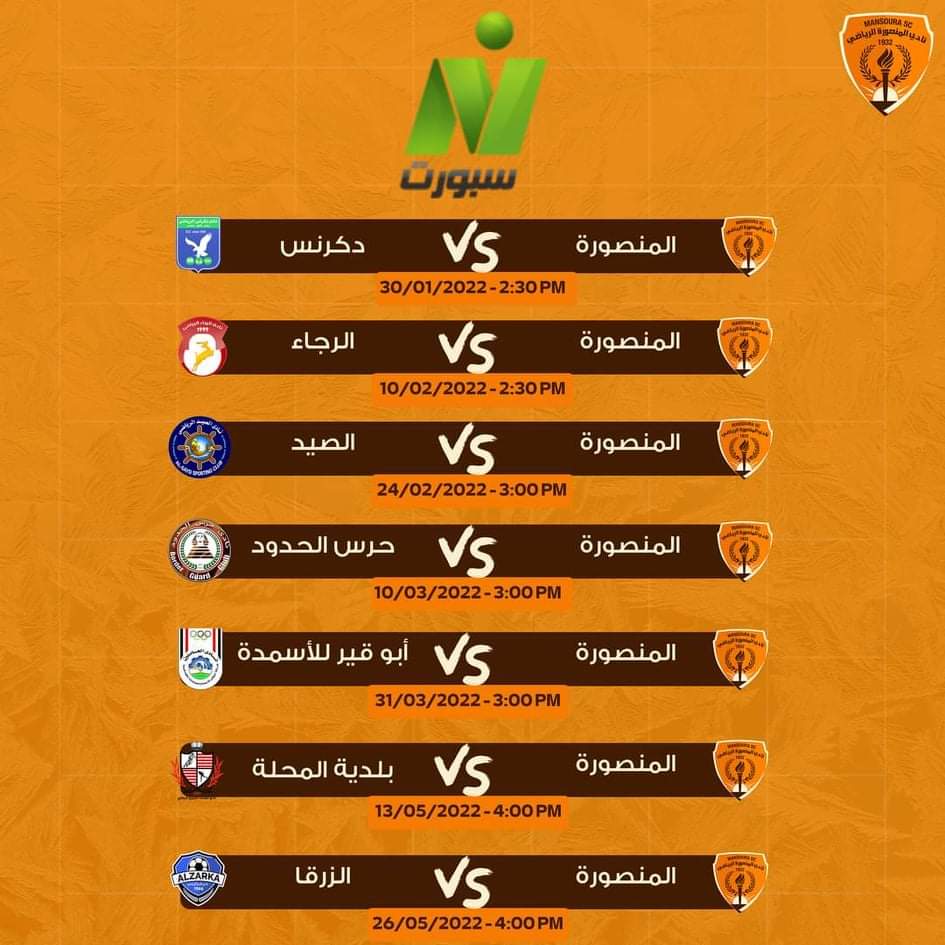 لبث مباريات المنصورة في الدور الثاني وعددها 7 مباريات.