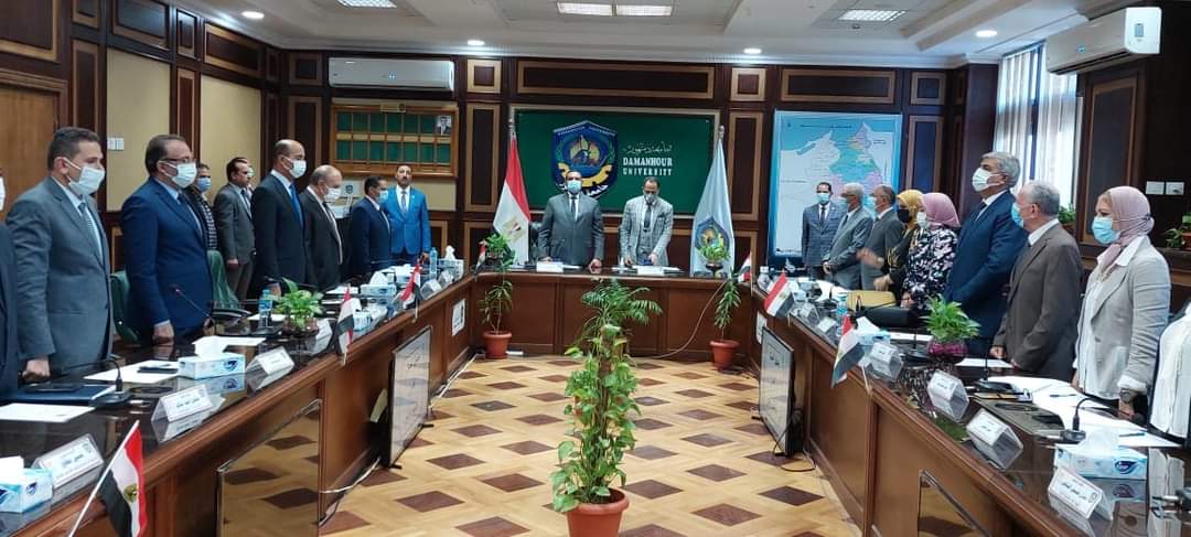 ٱستهل مجلس جامعة دمنهور إجتماعه اليوم الإثنين 27 سبتمبر 2021بقاعة الإجتماعات بإدارة الجامعة بحضور اللواء هشام آمنة – محافظ البحيرة وبرئاسة أ.د عبيد صالح رئيس الجامعة وحضور نواب رئيس الجامعة وعمداء الكليات وأعضاء المجلس بالوقوف دقيقه حداد على فقيد مصر المشير الراحل محمد حسين طنطاوي – وزير الدفاع الأسبق، أحد أبطال أكتوبر وأحد القادة العظام، والذى أستطاع العبور بمصر خلال فترة صعبة إلى بر الأمان .