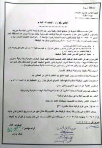 وأضاف محافظ أسيوط أن الوظائف التي تم الإعلان عنها تتضمن ( مدير عام الادارة العامة للشئون الهندسية بديروط ، مدير عام الادارة العامة للشئون الهندسية بأسيوط ، ومدير عام الإدارة العامة لشئون الإنتاج والشئون الإقتصادية) وذلك بموازنة ديوان عام المحافظة للعام المالي 2020/2021