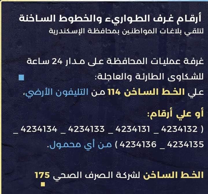 محافظة الأسكندرية تحذر مواطنيها بسبب سوء الطقس وتوجههم بالإلتزام بالتعليمات