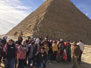 وقد تم التنسيق مع السيد الاستاذ/ مدير عام منطقة آثار الهرم حيث رافق الوفد مرشد سياحى وشمل برنامج الزيارة الاهرامات وأبو الهول والبانوراما وقد قام الاطفال بالتقاط العديد من الصور التذكارية معبرين عن سعادتهم بتلك الزيارة.