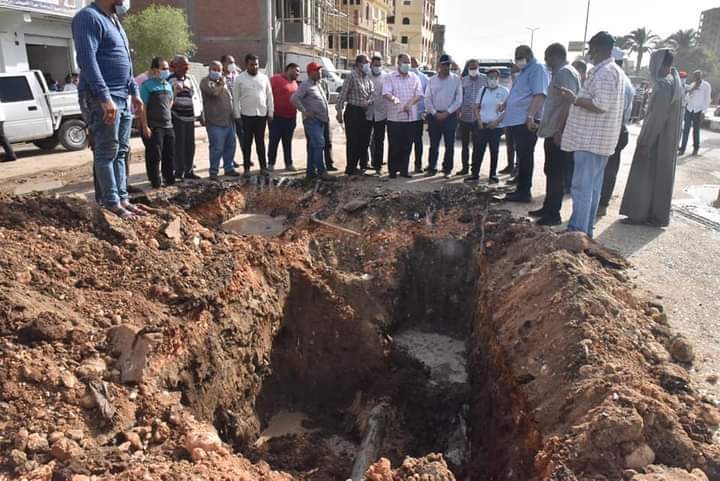 محافظ أسيوط يتفقد أعمال إصلاح كسر مفاجىء بخط مياه 6 بوصة بالطريق الدائرى بحى غرب