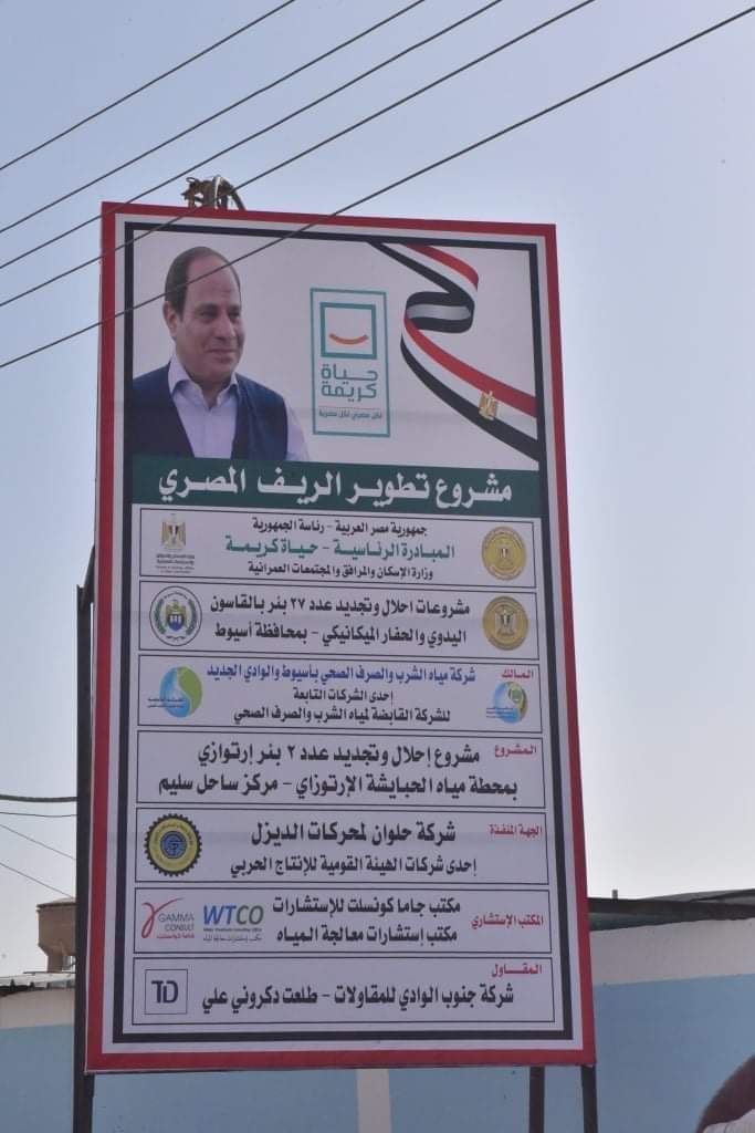 أعمال تنفيذ مشروع دق عدد ٢ بئر ارتوازى بمحطة الحبايشة بمركز ساحل سليم واحلال وتجديد خطوط المياه الاسبستوس بتكلفة 27 مليون جنيه بطول 24 كيلو متر وذلك ضمن مشروعات المبادرة الرئاسية “حياة كريمة”