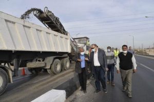 البلدورات تمهيدًا لإعادة تأهيل الطريق ورصفه بالتنسيق مع الهيئة القومية للطرق كما تابع المحافظ أعمال رفع المخلفات من على جانبي طريق أسيوط – المطار الصحراوي الغربي وتركيب البلدورات واستكمال أعمال التشجير بالتنسيق مع وحدة الانقاذ السريع بالمحافظة ومركز ومدينة أسيوط وتابع المحافظ الأعمال التي يجري تنفيذها بإستخدام معدات وسيارات ولوادر وحدة الإنقاذ السريع بالمحافظة فضلاً عن متابعة أعمال كشط الطريق تمهيدًا لإعادة رصفه بإعتباره من الطرق والرئيسية بالمحافظة وأحد شرايين التنمية.