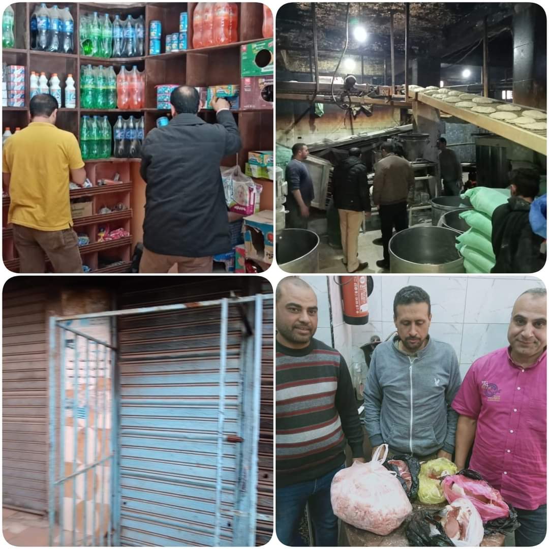 وفى مركز بدر تم تحرير 3محاضر عرض لحوم مكشوفة وعرضه للتلوث وتم التحفظ على كمية من اللحوم غير صالحة للاستهلاك الادمي وكذا تحرير محضرين بيع سجاير بأزيد من السعر الرسمي ومخبز بلدي قام بإنتاج خبز غير مطابق للمواصفات و3 مخابز غير معلنة عن مواعيد العمل.