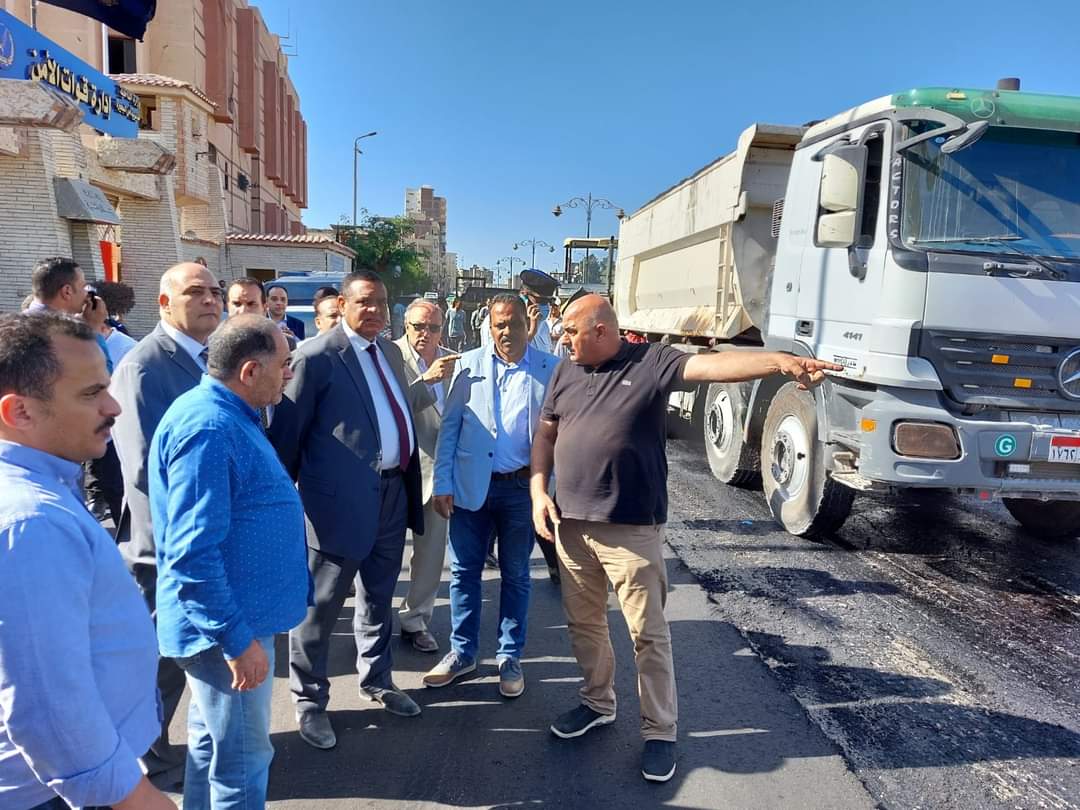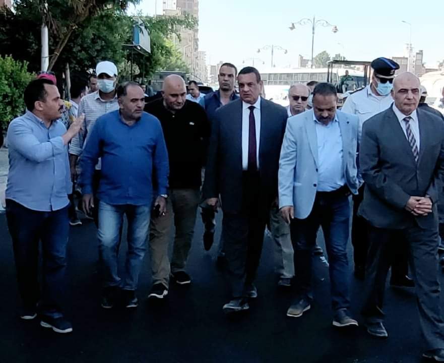 حيث تابع اللواء المحافظ الأعمال الجارية لتطوير ورفع كفاءة الشارع بالكامل من صيانة ورصف وتشجير وأرصفة وإنارة ودهان البلدورات وإنشاء محطات إنتظار للأتوبيسات والسيارات .