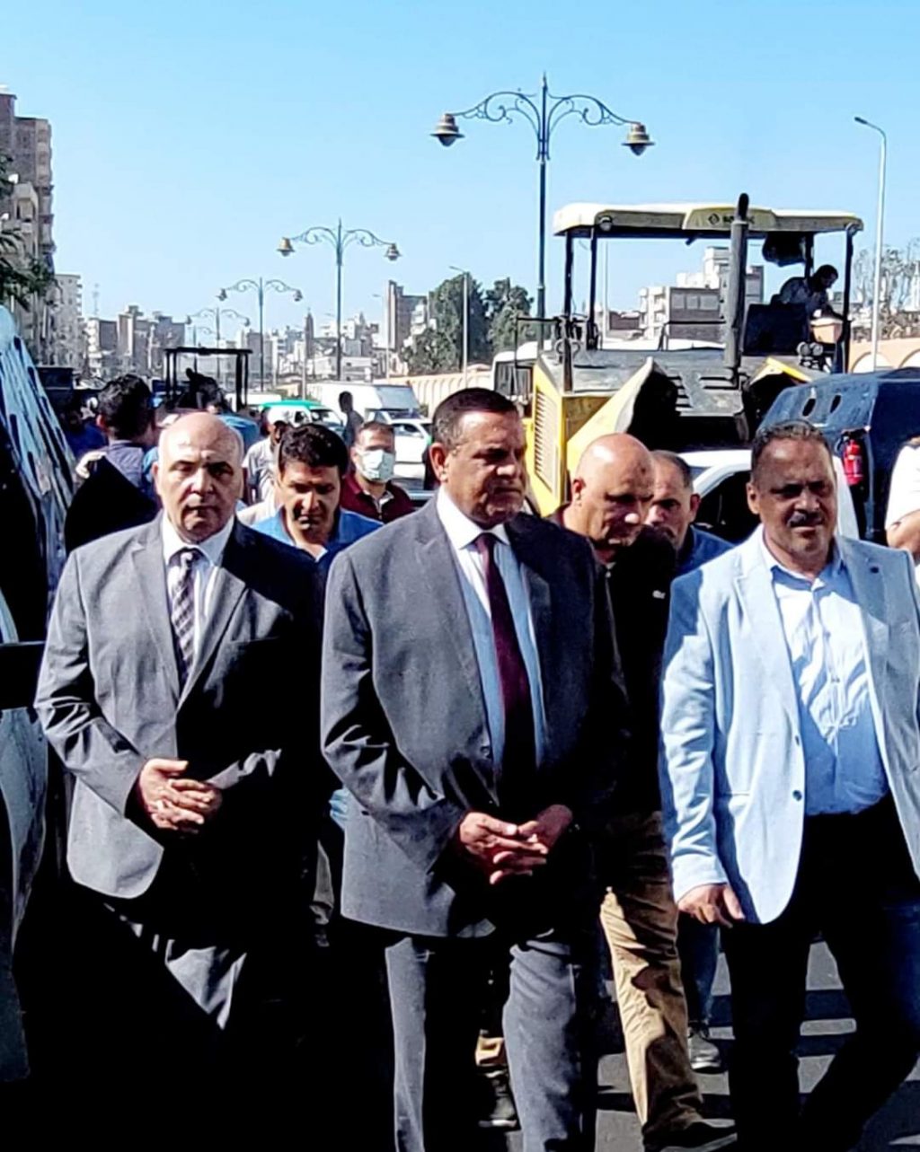 رافق المحافظ خلال الجولة م حازم الأشموني السكرتير العام واللواء محمد شوقي بدر – السكرتير العام المساعد وم/ فايز الجندي – مدير مديرية الطرق وم سيد مرعي – المدير التنفيذي لمشروع الرصف الإنتاجي .