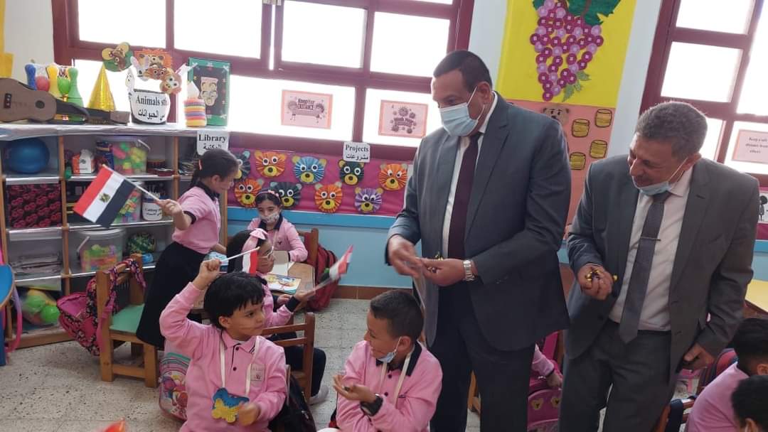 حيث تابع إنتظام الحصص بالفصول والمعامل والمكتبة وغرف الحاسب الآلي والمعامل وفناء المدرسة وإنتظام توزيع الكتب المدرسية ونظافة دورات المياة وتوفير الماء والمطهرات بإستمرار وتطبيق الإجراءات الإحترازية داخل الفصول وأثناء دخول وخروج الطلاب وعلى مدار اليوم الدراسي :-