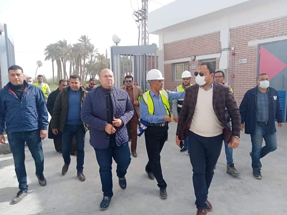 ويرافقة المهندس / محمود فؤاد رئيس مركز ومدينة العياط والمهندس / محمد عبد العظيم المشرف العام على مشروعات مياة الشرب والصرف الصحي لمحافظة الجيزة بالجهاز التنفيذي لمياة الشرب والصرف الصحى ومسؤلي شركة مياة الشرب والصرف الصحي بالجيزة والشركات المنفذة للأعمال محطة رفع الصرف الصحي الرئيسية بقرية اللشت ومحطتي رفع الصرف الصحي الفرعية بقريتي أبوالعباس وبمها ومحطة معالجة الصرف الصحي العياط