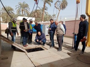 لمتابعة الموقف التنفيذي ونسب تنفيذ مشروعات الصرف الصحي وأزالة اي معوقات تعترض مشروع الصرف الصحي بمركز العياط