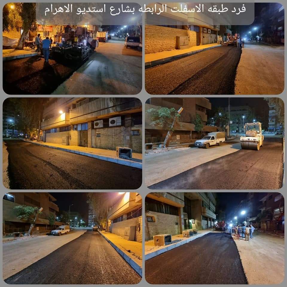 وفي حي الهرم تم وضع طبقه الاسفلت السطحية بشوارع زغلول و المنشية (ميدان الساعه) بالاضافه الى شارع المدينة المنورة بمنطقة المريوطية نطاق فيصل .