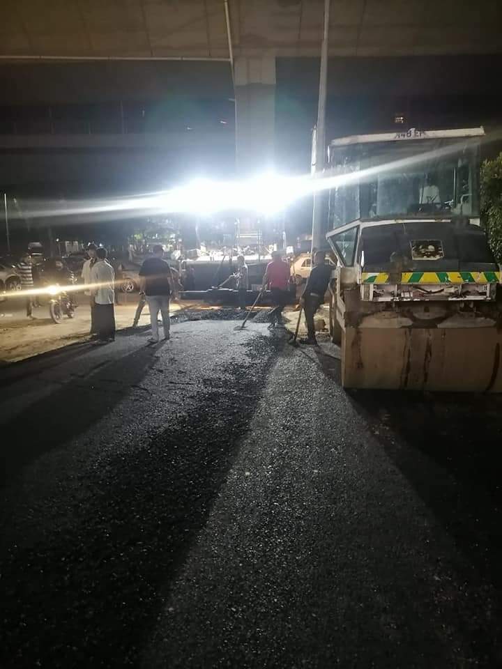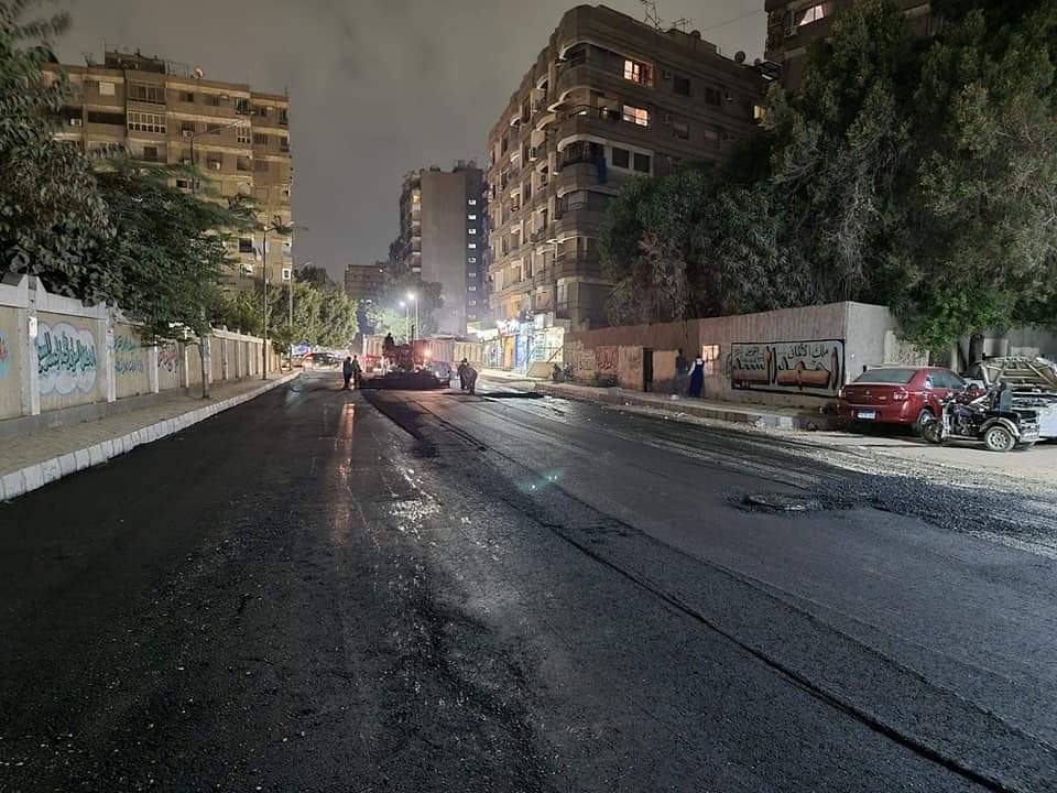 وفي حي العجوزة تم البدء في تنفيذ الطبقة الرابطة للأسفلت بشارع سوريا بدءا من شارع السودان وحتي شارع شهاب .