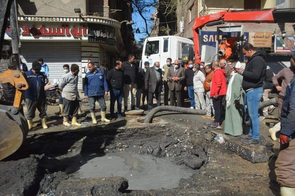 محافظ الجيزة يتفقد أعمال اصلاح كسر ماسورة مياه قطر 600 م بشارع الثلاثيني بالعمرانية وتغير ماسورة مياه بالمريوطية