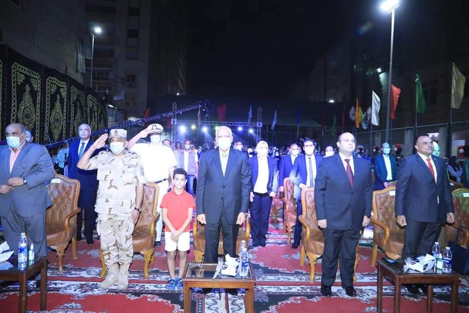 حضر الاحتفالية السيد إبراهيم الشهابى نائب المحافظ واللواء علاء بدران السكرتير العام والمهندس محمود فوزى السكرتير المساعد والعميد محمد حمزة المستشار العسكري وعددا من أعضاء مجلس النواب ومديرى المديريات ورؤساء الأحياء وأسر الشهداء والمصابين و الفرق والمجموعات الشبابية