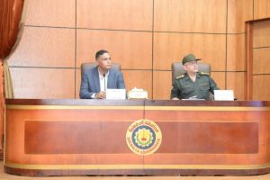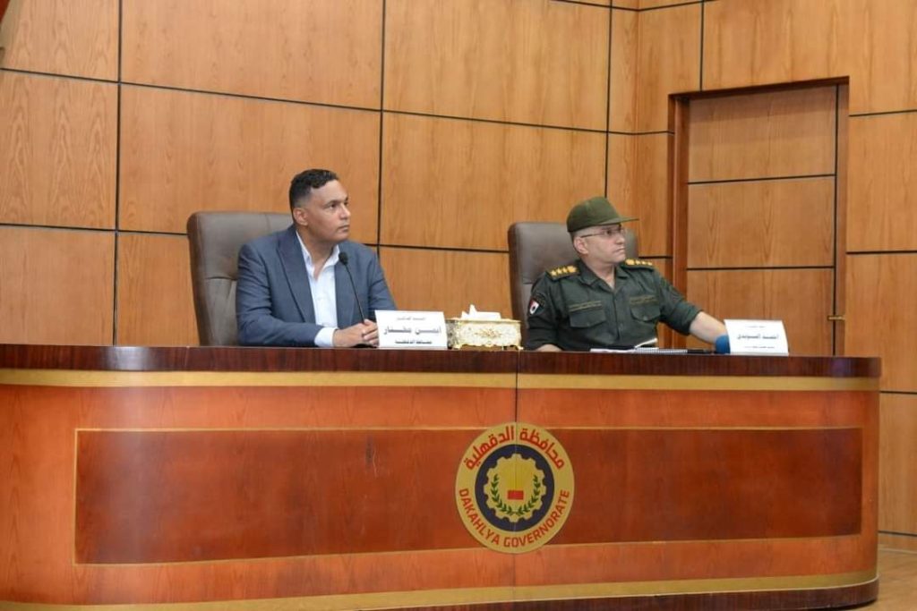 محافظ الدقهلية خلال رئاسته الاجتماع التحضيري استعداد للتدريب العملي المشترك لمجابهة الأزمات والكوارث صقر 120