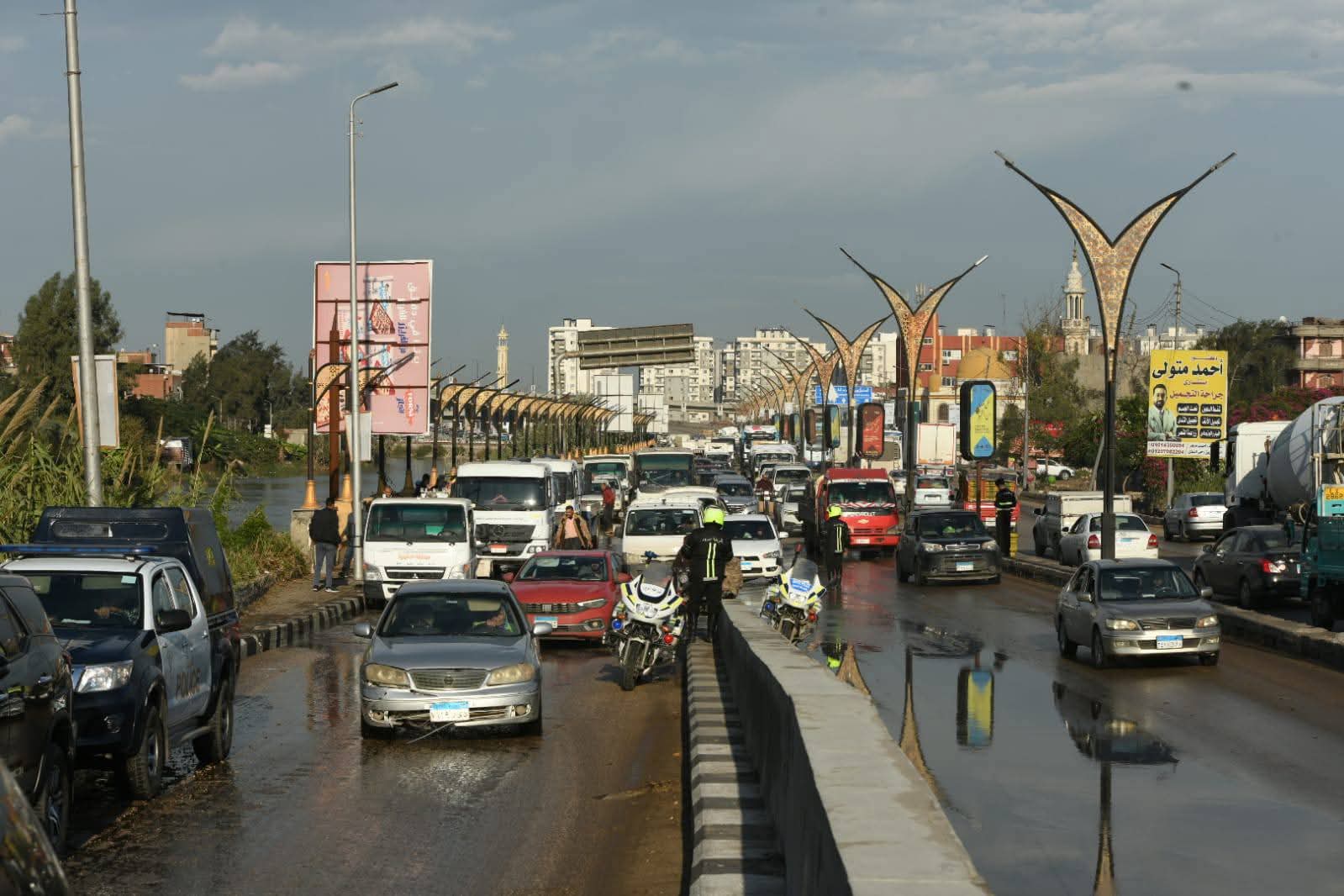 وخلال متابعته رفع تجمعات مياه الأمطار بشارع الجيش أسفل كوبري سندوب، ومطلع كوبري منية سندوب اتجاه الطريق الدائري الجامعة، وجه المحافظ على الفور بالدفع بسيارات الكسح وشفط المياه إلى أماكن التجمعات بجميع الشوارع والمناطق الحيوية والتي تحتاج إليها، بحضور المهندس محمد سعيد نشأت رئيس شركة مياه الشرب والصرف الصحي.