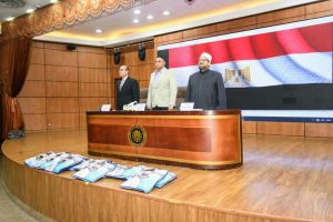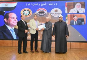 والشيخ صفوت نظير وكيل وزارة الأوقاف بالدقهليه ، وممثلي الاوقاف والازهر ومشرفي بعث الحج بالدقهلية .