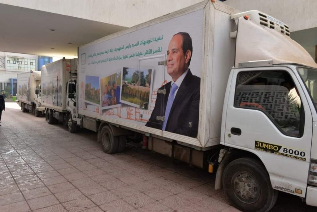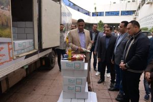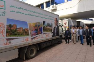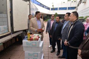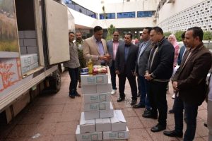 القافلة تضم 20 الف كرتونه مواد غذائية كمرحلة أولي سيتم توزيعهم علي الأسر الأولي بالرعاية .
