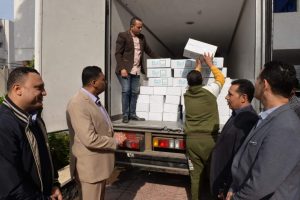 الي أن القافلة الجديده تضم 20 الف كرتونه مواد غذائية كمرحلة أولي سيتم توزيعهم علي الأسر الأولي بالرعاية في مختلف مراكز ومدن المحافظه .