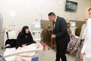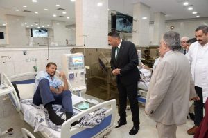 و 75 ماكينة غسيل كلوي وتخدم أكثر من 300 مريض يومياً والتقي المرضي للتأكد من تقديم الخدمات الصحية لهم واستمع الي مطالبهم .