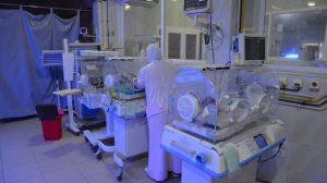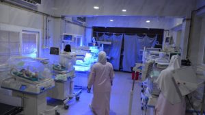 حيث يضم الدور الأول قسم العمليات ومكون من 5 غرف و كبسوله بالإضافة إلي قسم المبتسرين حضانات الاطفال ومكونه من 34 حضانة