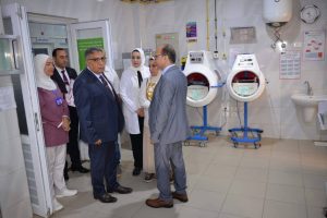 وشملت جولة ” المحافظ ” تفقد جميع أقسام المبنى ، العمليات، حضّانات الأطفال (المبتسرين)