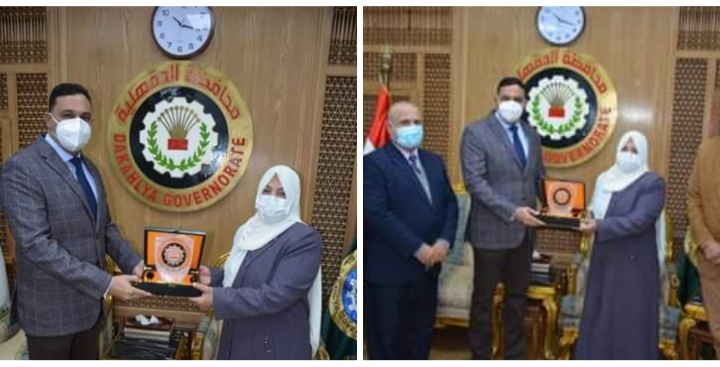 محافظ الدقهلية يكرم رئيسة لجنة إمتحانات الشهادة الإعدادية المعتدى عليها من أولياء الأمور لرفضها الغش فى لجان مدرسة العروبة بالسنبلاوين.