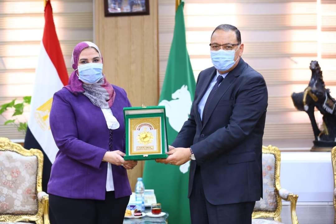 محافظ الشرقية يمنح وزيرة التضامن الاجتماعي درع المحافظة تقديرا لجهودها