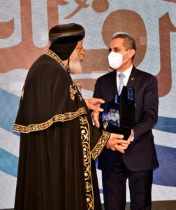 ووجه المحافظ التحية والتقدير لصاحب عرس اليوم نيافة الأنبا بولا صاحب الفكرة ومنفذها ومتابعها والذي بذل هو وفريق العمل المصاحب له جهدا كبيرا