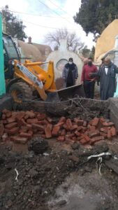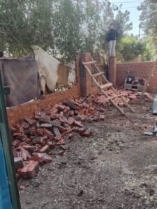 كما تم رصد أحد المواطنين أثناء قيامه ببناء سور من الطوب الأحمر بطول 9م وارتفاع 2م بقرية كفر الحاج داود التابعة للوحدة المحلية بالجعفرية بحوض العرقوب
