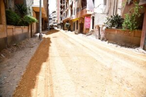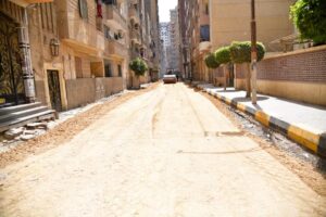 حيث تم الانتهاء من فرد طبقة السن وجاري تركيب بلدورات الأرصفة .
