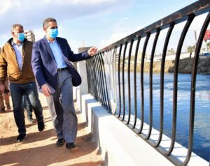 حيث تتم أعمال تركيب الحديد لسور الكورنيش ودهان السور