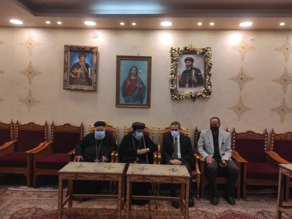 حيث كان في استقباله بمقر المطرانية في المحلة الكبرى، الأنبا صليب النائب البابوي لإيبارشية المحلة الكبرى.