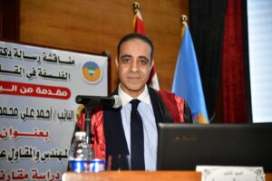 يُذْكَرْ أن لجنة المناقشة والحكم ضمت كلاً من (الأستاذ الدكتور نبيه رسلان أستاذ القانون الدولي مناقشاً ورئيساً، الأستاذ الدكتور محمد شوقي العناني أستاذ القانون المدني بجامعة القاهرة مناقشاً وعضواً والأستاذ الدكتور مصطفى أبو عمرو أستاذ القانون بجامعة طنطا مشرفاً وعضواً).