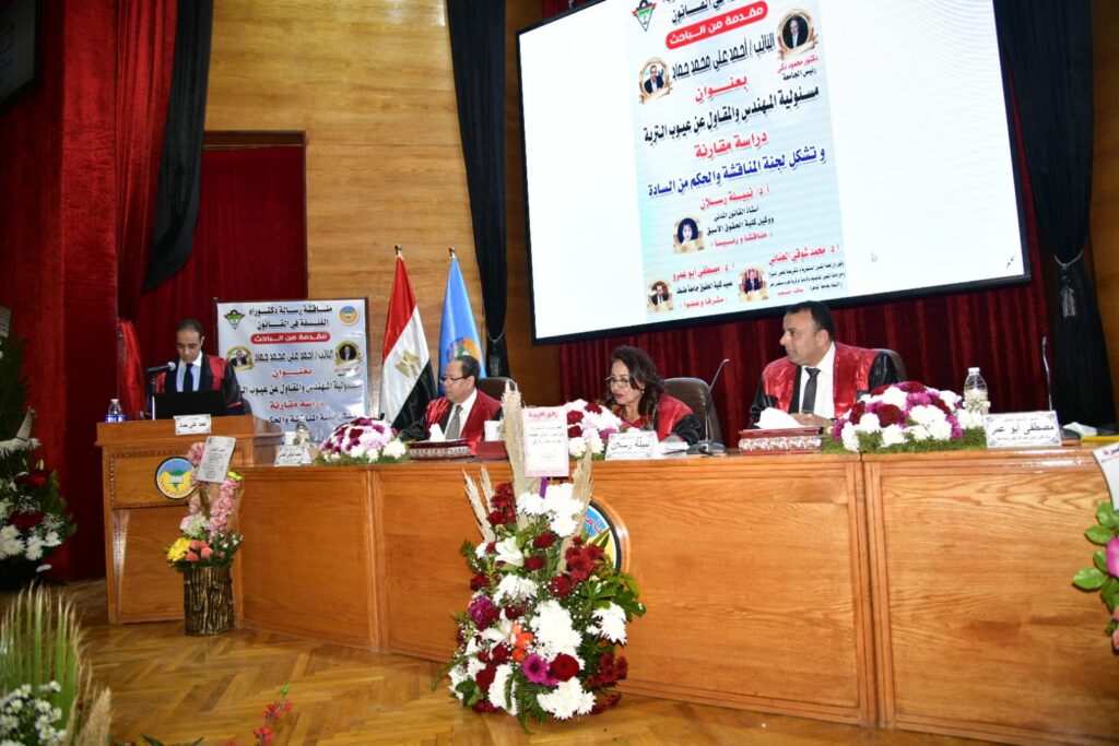 شهد الأستاذ الدكتور طارق رحمي محافظ الغربية والأستاذ الدكتور محمود ذكي رئيس جامعة طنطا، مساء اليوم بقاعة المؤتمرات بجامعة طنطا، حصول الدكتور أحمد حماد عضو مجلس الشيوخ على درجة الدكتوراة في القانون تحت عنوان “مسئولية المهندس والمقاول عن عيوب التربة”
