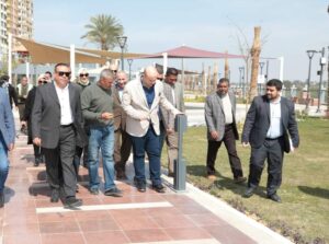 وناقش المحافظ آلية عمل النافورة الراقصة،والتي سيتم تشغيلها في الفترة الصباحية لمدة محددة،لحين استلام وتركيب لوحة التحكم الخاصة بمنظومة عمل النافورة ، حيث وجه بمتابعة ذلك مع الشركة الموردة لمكونات النافورة ، مشيرا إلى أنه سيتم طرح المحلات التجارية بالكورنيش السفلي خلال الفترة القادمة ،موجها بسرعة تلافي بعض الملاحظات والتي تم رصدها خلال الجولة ، وذلك عن طريق الشركة المنفذة.