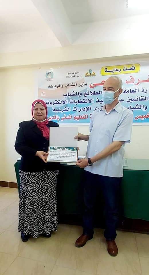 كرم الدكتور عزت محروس، وكيل وزارة الشباب والرياضة، القائمين على تنفيذ الإنتخابات الإلكترونية لبرلماني الطلائع ومديري الادارات الفرعيه و منسقي البرلمان، كذلك مسئولي الربط الإلكتروني بالإدارات، وتسليمهم شهادات التقدير، جاء ذلك خلال الحفل الذى أقيم بقاعة التعليم المدنى بالمديرية، بحضور عبد المنعم الكنانى، وكيل المديرية للشباب، مصطفى غريب، وكيل المديرية للشباب، وجاء ذلك بناءً على توجيهات اللواء جمال نور الدين، محافظ كفرالشيخ.