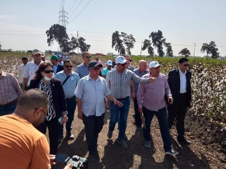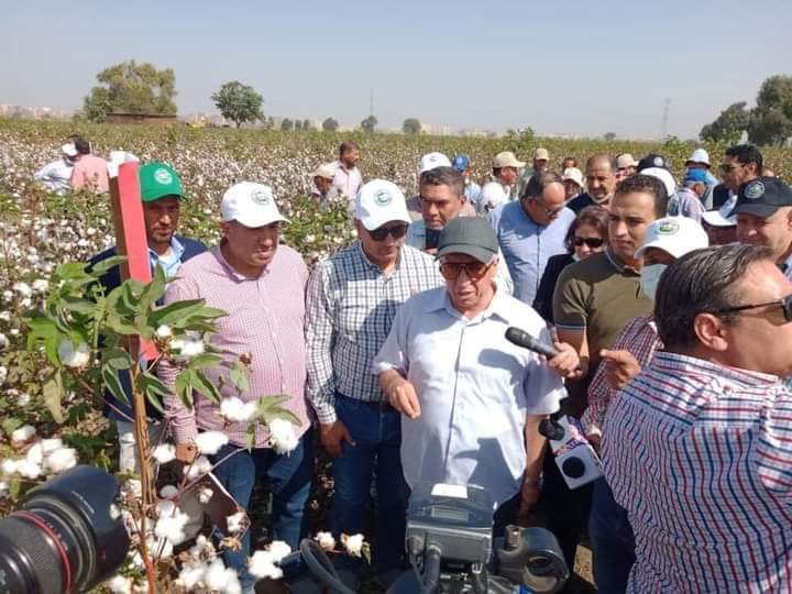 وأضاف أنه عرض عدد من الاصناف المبكرة في النضج والتي تتحمل الجفاف كما استعرض عدد من السلالات التي تلائم الجني الألي ،وتم عرض الخطة البحثية المستقبلية الخاصة بإنتاج الاصناف الجديدة ، وأهمها جيزة 97 كصنف جديد تمت زراعته وتجربته بمحافظة كفر الشيخ ومحافظة المنوفية، ويتميز بأنه عالي الانتاجية، فمدة زراعته من 160 ل 170 يوم وانتاجية الفدان من 10 ل 12 قنطار للفدان، ، ويتميز بزيادة عدد اللوز على النباتات يصل من 40 ل 50 لوزة متوسط وزن اللوزة من 3 ل 3.5 جرام، وسيتم التوسع في زراعته خلال الموسم المقبل عام 2022 ليغطي محافظتي المنوفية والغربية، بالإضافة للأصناف الجديدة المتوقع انتاجها جيزة 99 وجيزة 100، كما استعرض خطة انتاج التقاوي الخاصة بالحفاظ على النقاوة الوراثية وفي ظل ارتفاع الاسعار الحالية والتي وصلت لأكثر من 5 ألاف جنيه للقنطار ومن المتوقع ان تزيد مساحة القطن المنزرعة العام المقبل، وتستعد وزارة الزراعة، لتجميع كميات من التقاوي، تكفي لأي مساحة يمكن زراعتها، واستعرض منظومة التسويق الجديدة، والتي يتم تعميمها على مستوى الجمهورية بناء على تعليمات رئيس مجلس الوزراء والتي تعتمد على نظام المزايدة في البيع ، واثبتت المنظومة نجاحها الكبير للحفاظ على حقوق المزارع والتجار، وحماية الاقطان من الخلط، وذلك في اطار خطة الدولة للنهوض بمحصول القن والتي تبنى على محاورها الثلاثة الزراعة والتجارة والصناعة وتستهدف الدولة زيادة المساحة لمنزرعة تدريجيا لتصل ل 500 ألف فدان في موسم 2025، ويعتبر محصول القطن من المحاصيل الاقتصادية لأنه محصول متعدد الأغراض، فينتج عنه الشعر والذي يدخل في صناعة المنسوجات بأنواعها واستخراج الزيوت وزيت بذرة القن من أجود الزيوت إضافة لمخلفات البذرة والتي تستخدم كعلف حيواني” الكُسب”.