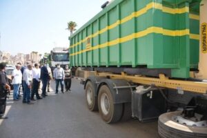 وصرح” مختار” ان المحطة الوسيطة الجديدة مكونة من 5 سيارات”هوك ليفتر” بالإضافة إلي 10 حاويات” كونتر” حمولة الكونتر الواحد 25 طن وواحد لودر مفصلي