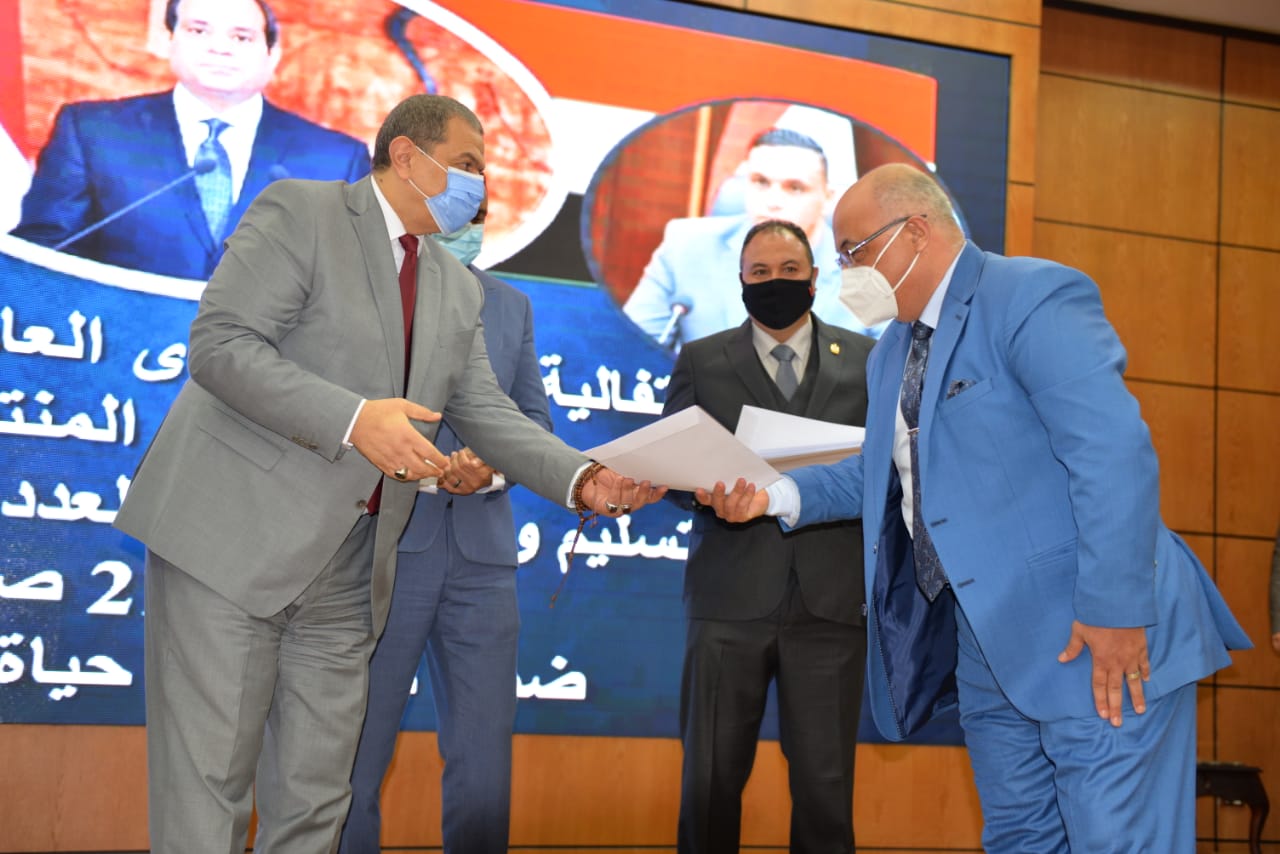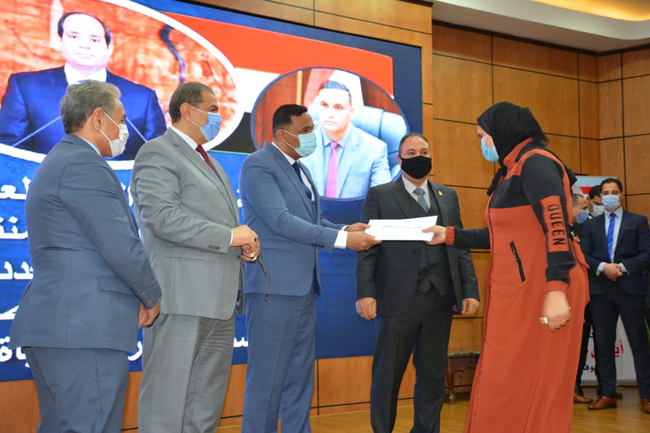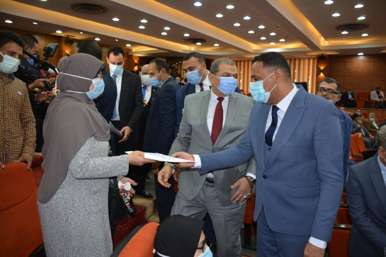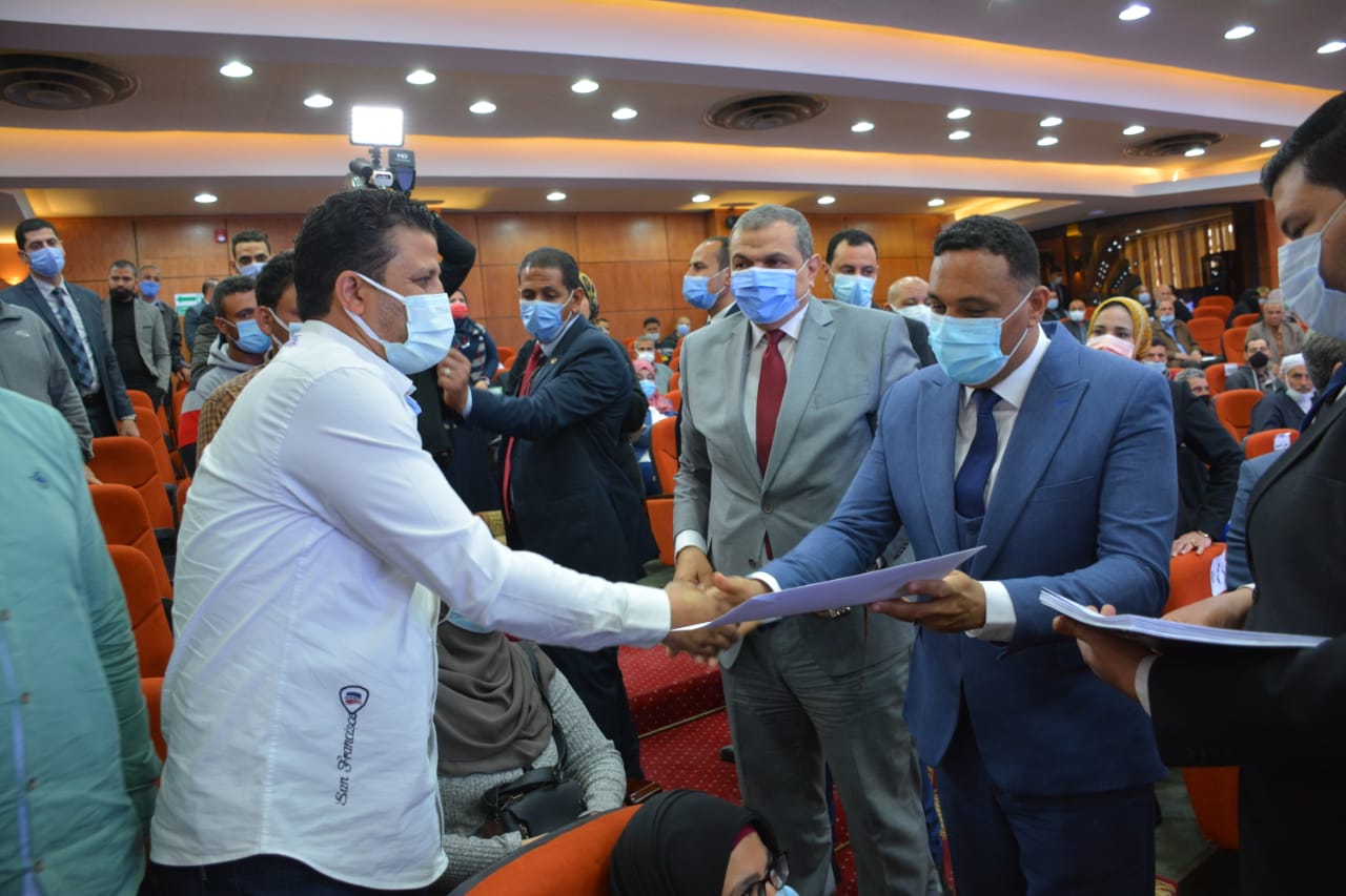 وقد سلم الوزير والمحافظ خلال الاحتفالية 3427 وثيقة تأمين للعمالة غير المنتظمة، وعدد 2107 وثيقة تأمين للصيادين، وعدد 71 عقد عمل بالقطاع الخاص لذوي الاحتياجات الخاصة، كما سلم الوزير والمحافظ شهادات التخرج لعدد 30 خريج من مراكز التدريب علي المهن والحرف المختلفة وفي مقدمتها مهن الكهرباء والملابس الجاهزة والسباكة.