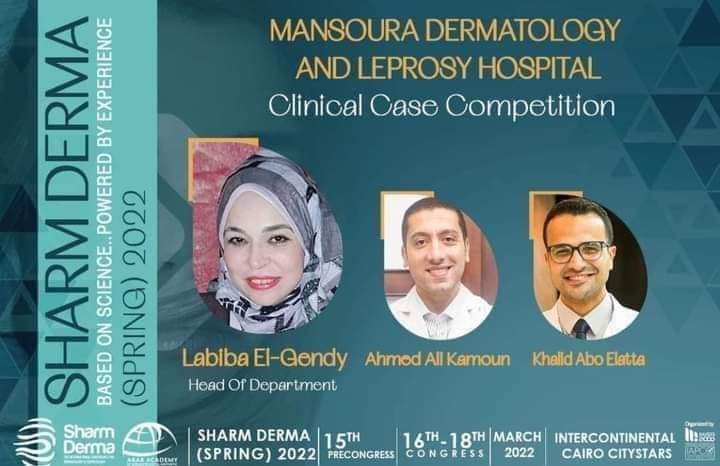 فوز مستشفى الجلدية والجذام بالمنصورة بالمركز الثالث على مستوى مستشفيات مصر بمسابقة الحالات الإكلينيكية بمؤتمر شرم ديرما