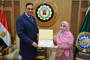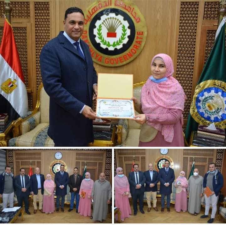 “محافظ الدقهلية” يكرم الطالبة إبنة ‘منية النصر” التي قامت بتسميع القرآن الكريم كاملا فى جلسة واحدة