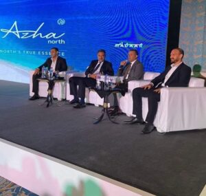 شارك في المؤتمر المهندس عمرو عطية نائب رئيس شركة WATG لمنطقة الشرق الأوسط وأفريقيا والذي أكد حرص شركته على أن تراعي التصميمات المعمارية والهندسية للمنتجع علي أحدث النظم العالمية وتحويل أزهى نورث إلى أفضل وأرقى منتجع بالساحل الشمالي من حيث الجودة والاستدامة والخدمة المتميزة وتطبيق أحدث النظم التكنولوجية داخل المنتجع