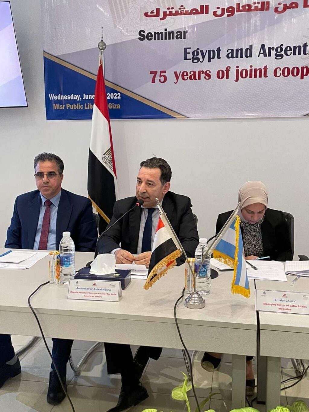 وجاءت الندوة احتفالا بمرور 75 عامًا على نشأة العلاقات الدبلوماسية بين مصر والأرجنتين.