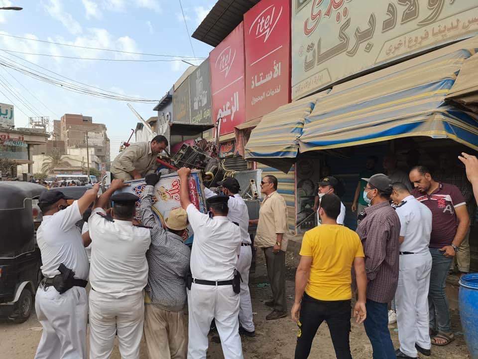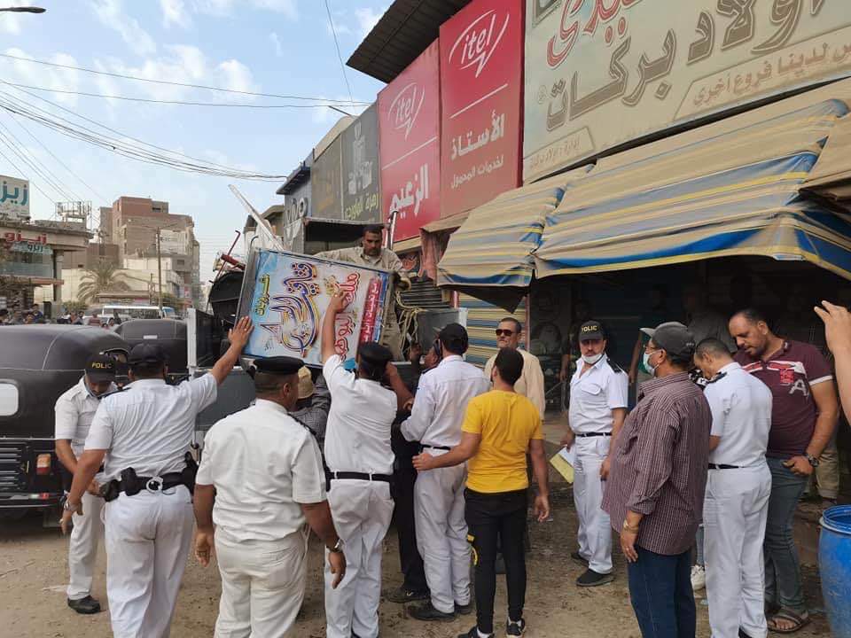وتمكنت الحملة من إعادة الانضباط بشوارع المدينه ورفع كافة أشكال التعديات والاشغالات على الطريق وتعديات الباعة الجائلين والاكشاك والمحال التجارية والعقارات التي تعوق حركة المارة كما جري رفع الأعمدة الحديدية والسلاسل والبراميل والبردورات والحواجز الأسمنتية وإطارات الكاوتش التي يضعها المواطنون أمام العقارات، وأصحاب المحال التجارية ..