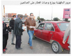 وانتشر ضباط وأفراد إدارة المرور قبيل أذان المغرب على كل مداخل ومخارج الطرق السريعة في المنصورة، وقاموا بتوزيع الوجبات على السائقين والمواطنين المسافرين على الطرق وسط ترحيب وسعادة من الجميع.