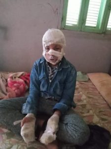 وقد قام والد الطفل باتهام المسن المجرم ويدعي “محمود. ع”، وشهرته “الأقرع” 76 عامًا بالمعاش ويقيم دائرة القسم بالاعتداء على نجله بسبب خلاف على جلباب حيث ان قد قام المسن بإشعال النيران بالجلباب وإلقائه بوجه الطفل، ما نتج عنه إصابته.